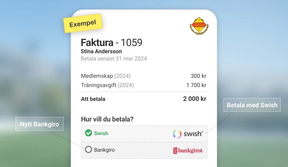 Vi har nämligen ett nytt Bankgiro på alla fakturor som skickas via Svenskalag. Om du öppnar din faktura på datorn eller i mobilen kan du även betala den med Swish.